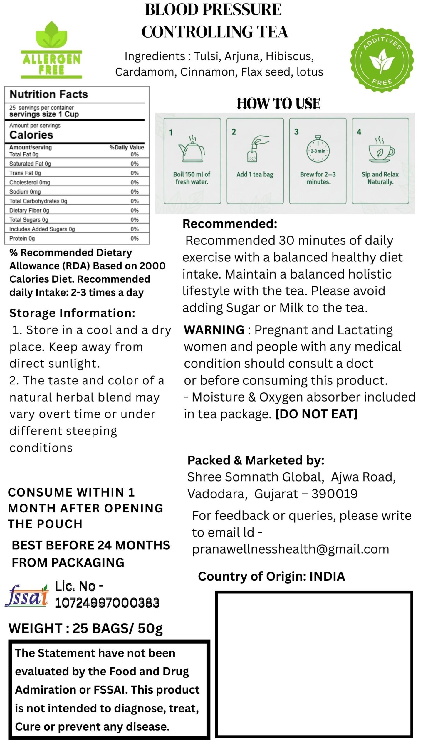 Stay calm, balanced, and heart-healthy with Prana Blood Pressure Controlling Tea Bags — a carefully formulated herbal blend featuring Tulsi, Arjuna, Hibiscus, Cinnamon, Flaxseed, and Lotus.