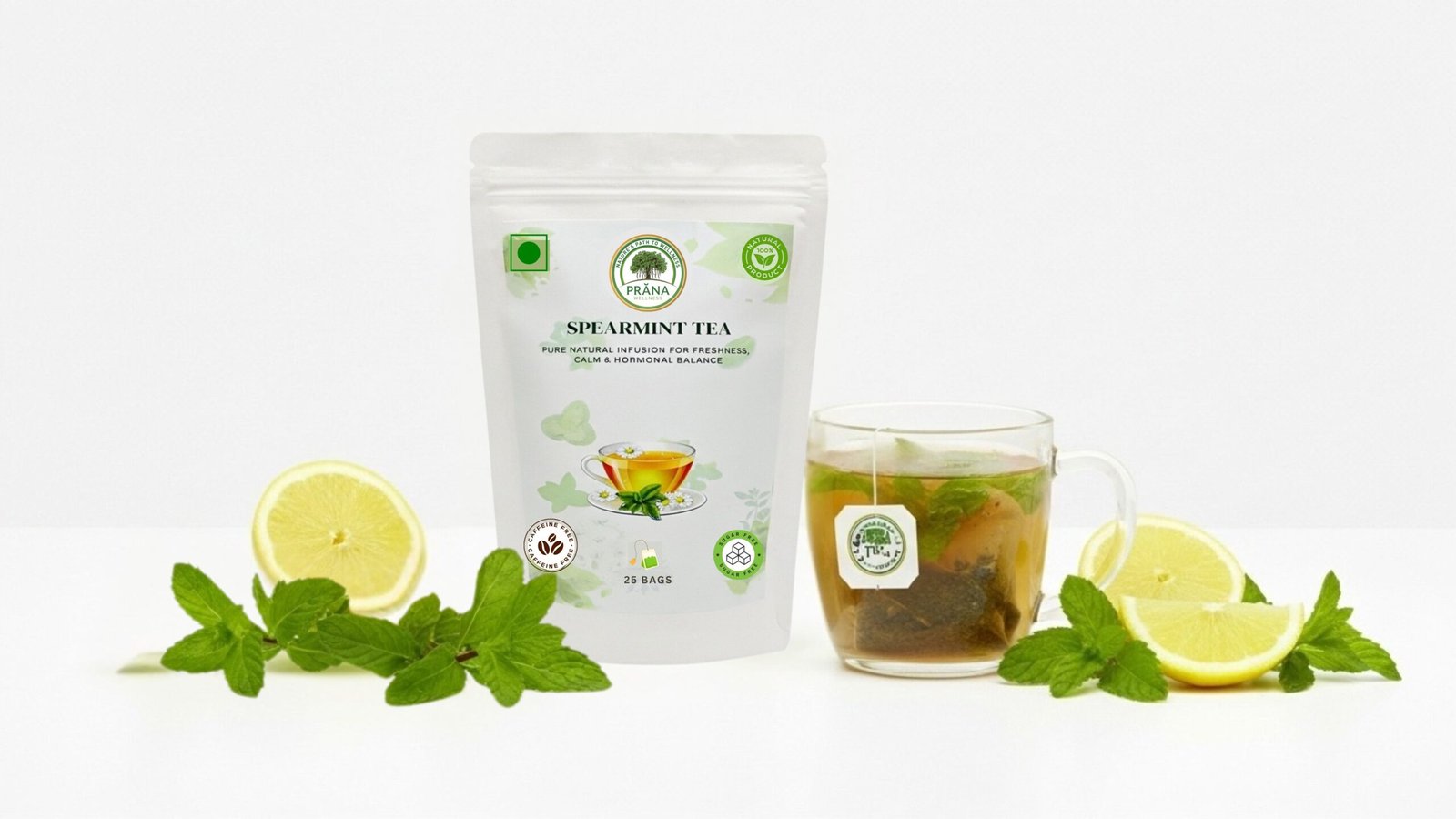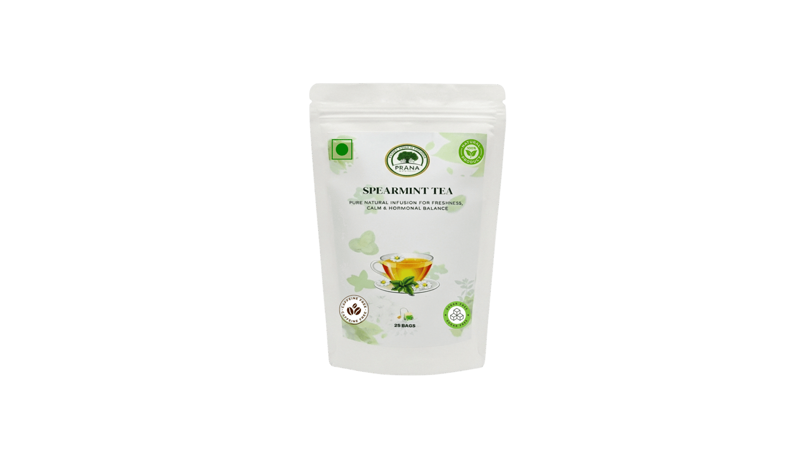 Experience the cooling freshness of Prana Spearmint Tea Bags — crafted from pure spearmint leaves, naturally dried to preserve their aroma and healing properties.