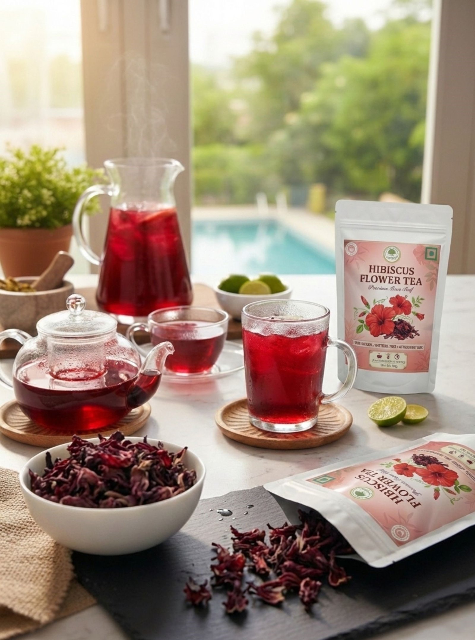 100% NATURAL DRIED HIBISCUS FLOWERS: Sourced from the finest Hibiscus (Hibiscus sabdariffa) flowers, our tea is 100% natural with no caffeine, artificial flavors, or colors. RICH IN ANTIOXIDANTS: Packed with vitamins and minerals, Hibiscus tea is known for its high antioxidant content, supporting heart health and overall wellness. PROMOTES RADIANT SKIN & HAIR: Hibiscus is often called the “natural Botox” due to its ability to support skin elasticity and healthy hair growth. DELICIOUS & REFRESHING: Enjoy it hot or cold as a tart and refreshing herbal tea with a beautiful deep red color. EASY TO BREW: Simply steep the loose leaf flowers in hot water for a few minutes for a vibrant and flavorful cup.